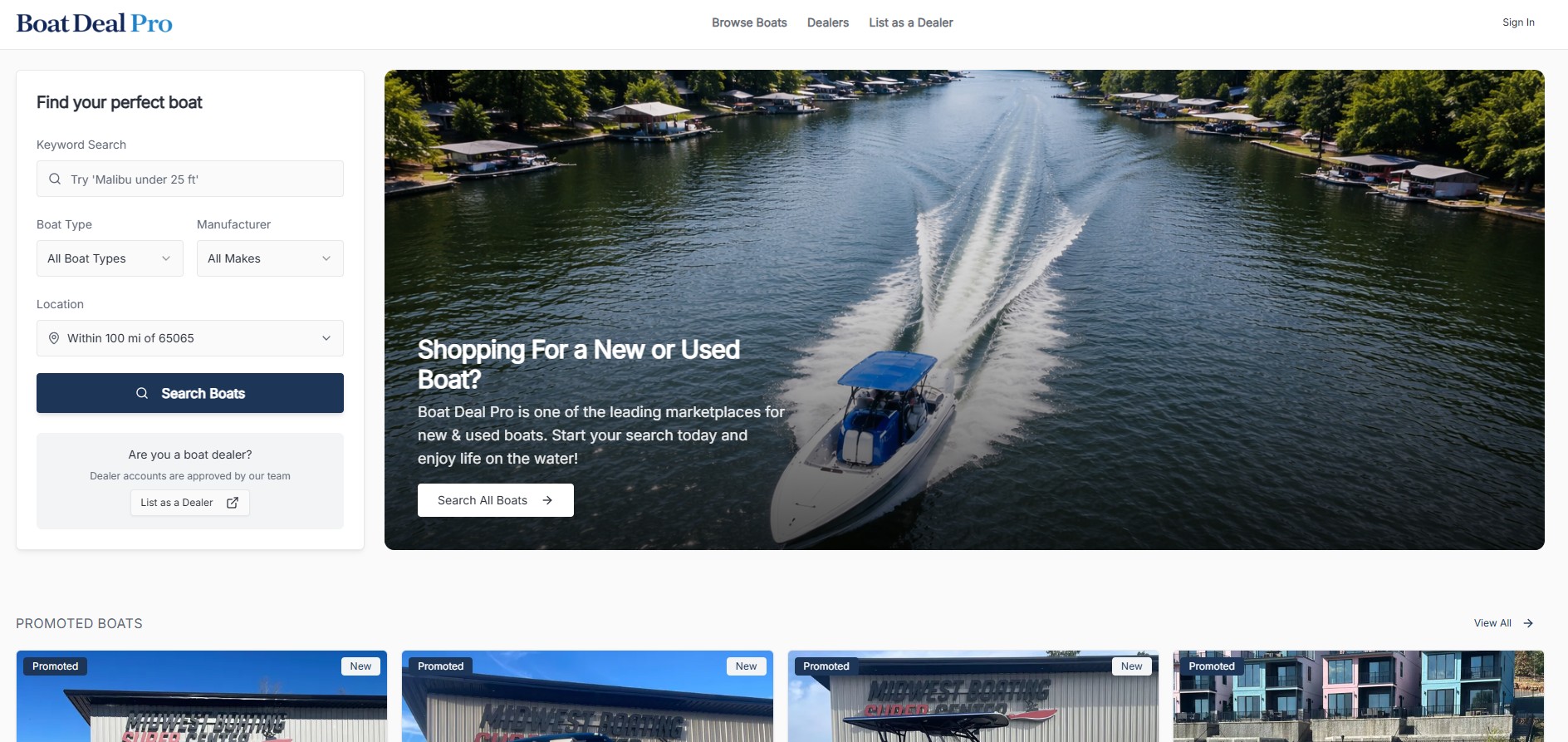 Boat Deal Pro v0.1 introduces the core marketplace structure that allows buyers to browse listings and dealers to showcase inventory in a clean, professional environment.